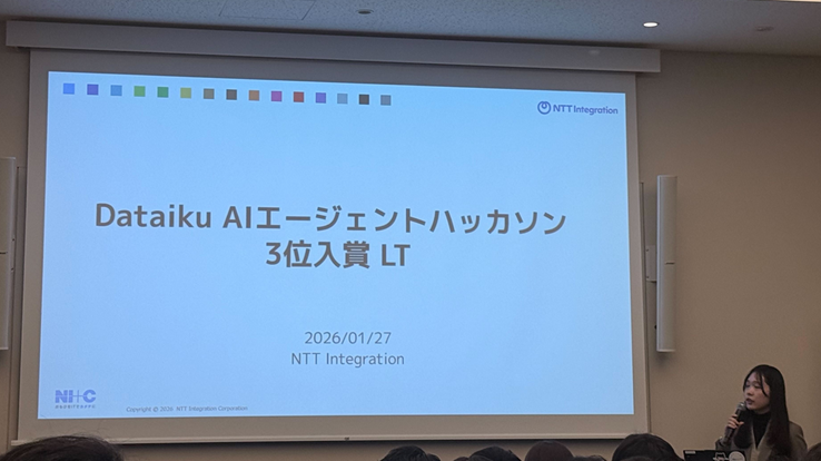 Dataiku Japan株式会社が主催する「AIエージェントハッカソン」に10社を超えるパートナー企業がエントリーする中、初参加のNI+C Dataikuチームが、おかげさまで3位に入賞いたしました。