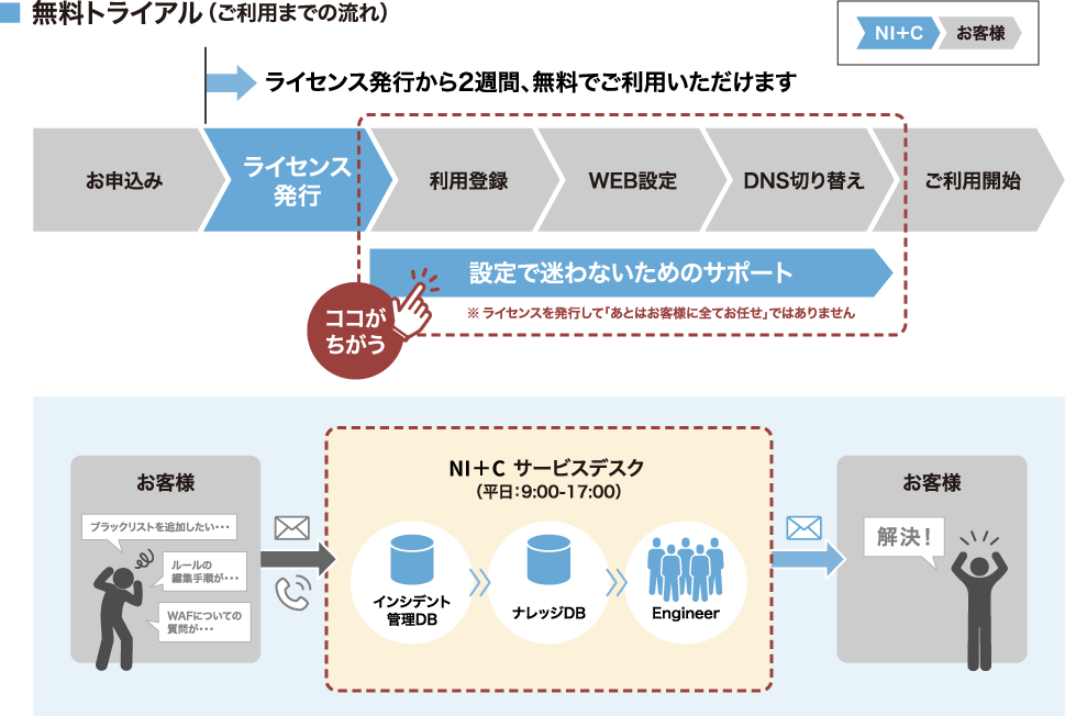 ※ライセンス発行後、ご利用いただくまでの設定で困らないようサポートさせていただきます。