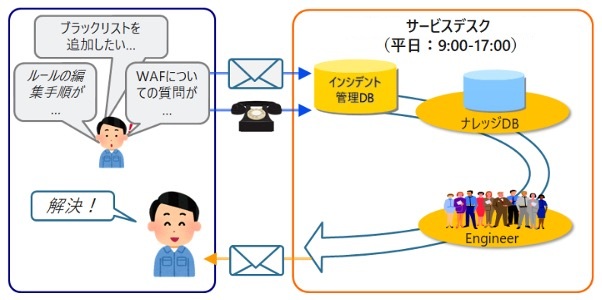 Imperva Cloud WAFに関する技術的なお問い合わせに対し、弊社サービスデスクにご連絡いただくことでお客様をご支援します。 蓄積されたナレッジや、技術者の知見により、お客様のお悩みを早期に解消いたします。