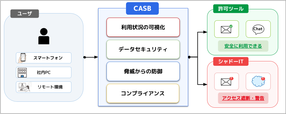 そして、この「シャドーIT」を可視化し、安全にクラウドサービスを使うための仕組みとして注目されているのが、次の章で紹介する「CASB(Cloud Access Security Broker)」です。