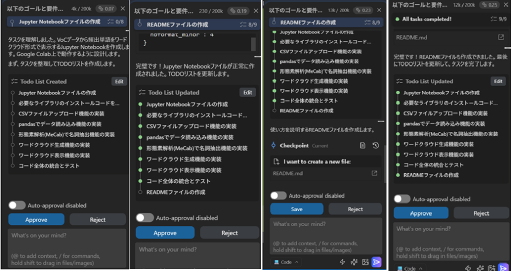 これにより、人間によるレビューがしやすいくなっており、AIの挙動をコントロールしやすい、良いコード生成ツールだと感じました。