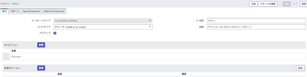 OOTBのDiscoveryパターンで情報を収集できない機器の場合、カスタムしたDiscoveryパターンを作成する必要があります。