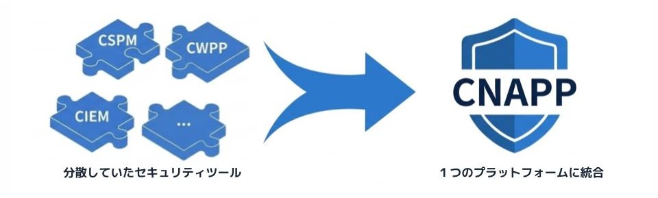 CNAPPは、従来は別々のツールで扱われがちだった CSPM、CWPP、CIEM などを1つのプラットフォームで統合し、クラウドネイティブ環境を包括的に守るための考え方です。