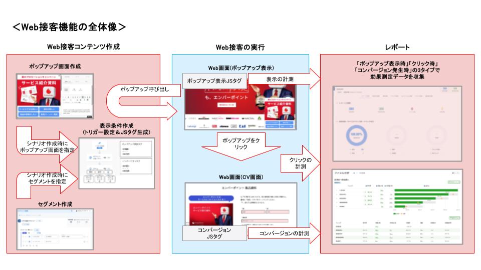 まず、画像の左側、Web接客コンテンツ作成のボックスからご説明します。