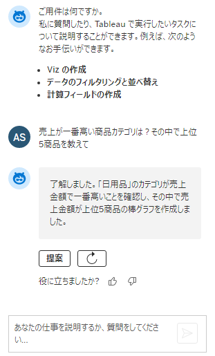- Tableau:複数の意図を同時に処理しようとすると、解釈が不安定になるケースあり。1つずつ指示を出せば想定通りの結果を表示