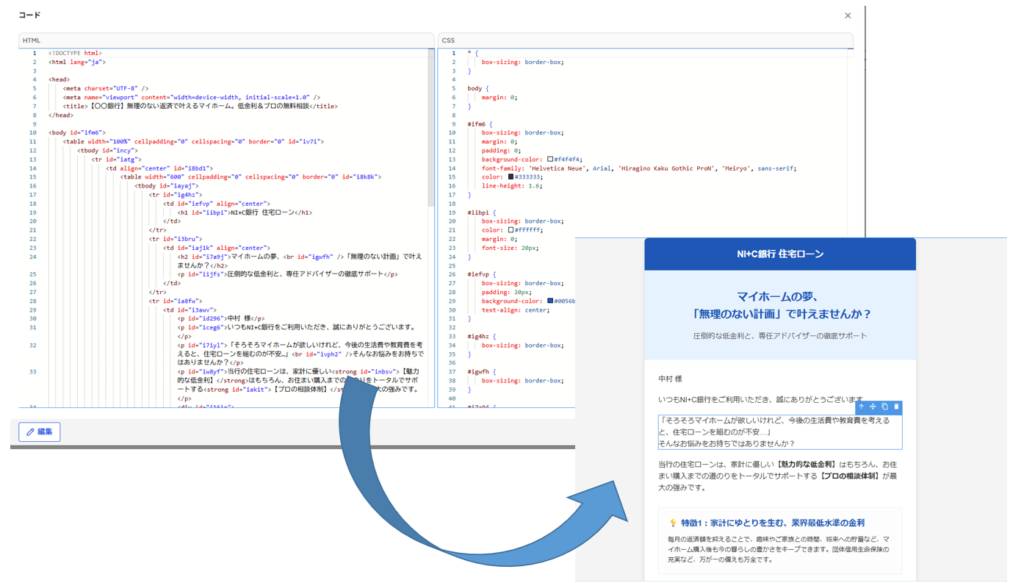 ‐HTMLメールエディア(コンテンツブロック操作によるGUIエディタ/HTMLソースエディタ)