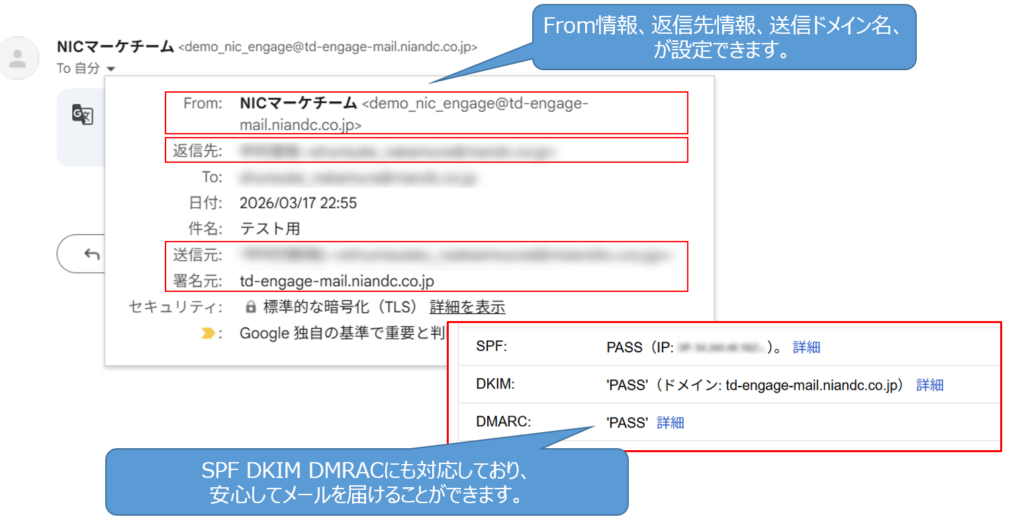 SPF、DKIM、DMARCにも対応しているので、スパム判定といったリスクも避けつつ安心してメールを配信することができます。